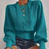 Enfärgad stickad tröja kvinnors rundhalsad tröja Lanternärm Topp