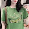 Women Clothing Stylish Rhinestone Luxury Chic Basic T Shirt Summer Casual Short Sleeve Tees Female Round Neck Loose Cotton Tops