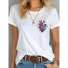 Sommar Rundhalsad Hjärtformad Tryckt Topp Trendig Casual Kortärmad Ren Bomull Dam T-shirts