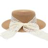 Summer bow streamer straw hat women's vacation beach hat flat top Lafite straw sun hat
