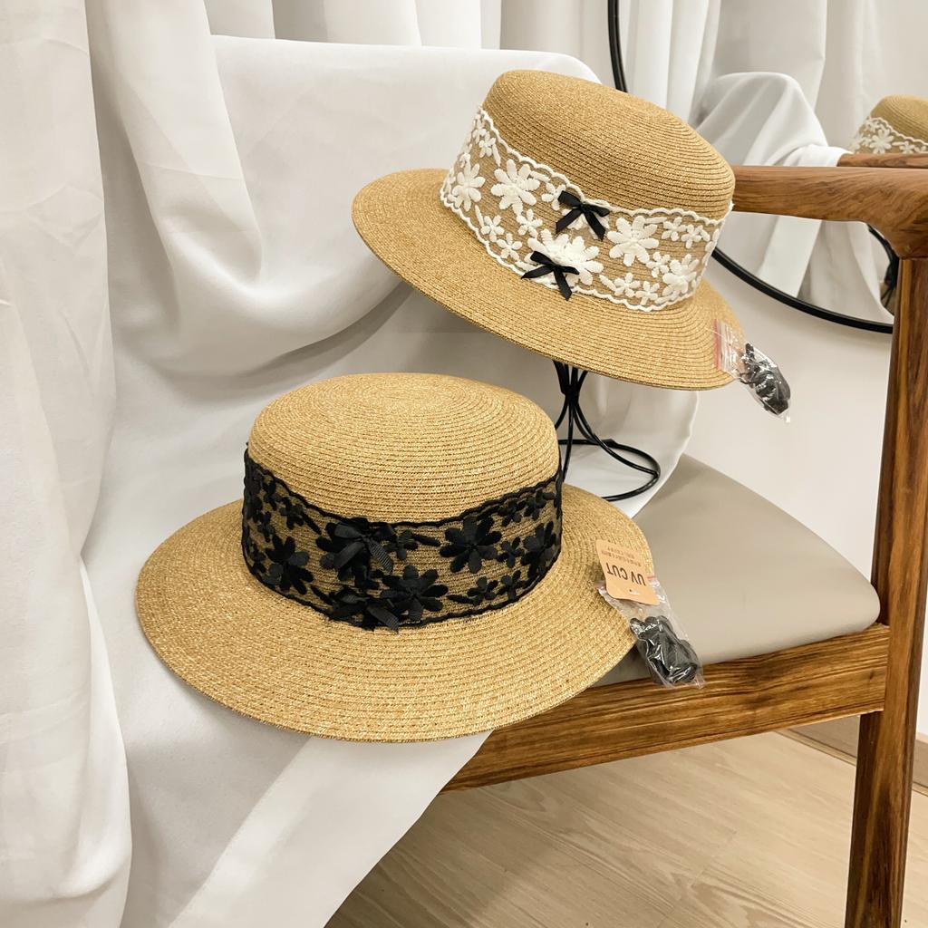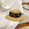 Stråhatt dam sommar solskydd solhatt retro spets liten brätte platt topphatt strandsemester topphatt