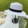 Hat Women's Fashion Elegant Big Eaves Pearl Straw Hat Women's Summer Travel Sunscreen Sun Hat British Top Hat
