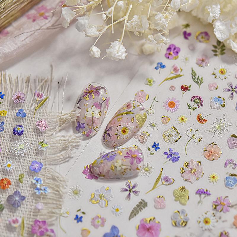 Körsbärsblommor Sakura Vår 5D Nageldekorationsklistermärke Guldstämpling Mjukt Lim Reliefklistermärke Chic Manikyrdekaler
