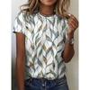 Sommar Rundhals 3D Blomtryck Topp Trendiga Casual Kortärmade Dam T-shirts