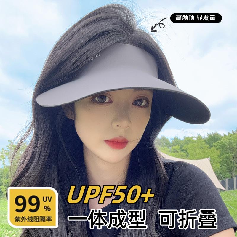 Spårlös integrerad solhatt för kvinnor UV-skyddande solhatt Sommarsport Stor brätte Tom topp Vikbar solhatt