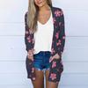 Dam Casual Mode Blommig Tryck Långärmad Mellanlång Kofta Jacka
