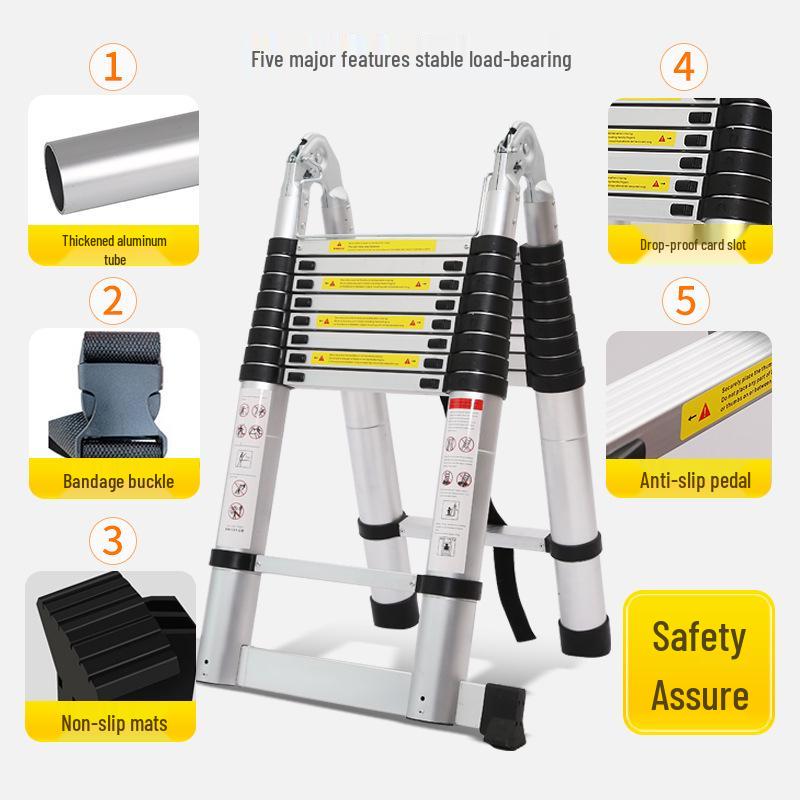 Aluminum Alloy Multifunctional Folding Ladder: Portable, Thickened, and Telescopic Herringbone Design