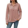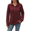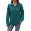 Dammode Enfärgad Revers Knäppning Sömnad Lös Långärmad T-shirt Topp