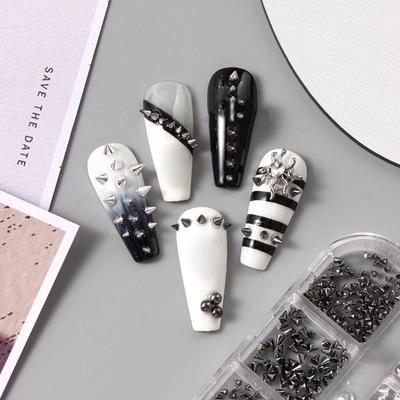 6 Fack Y2K Punk Metall Nitar Nagelberlocker Kon Blandade Storlekar Svart Silver Nagelkonst Nitar 3D Stilrena Legeringsspikar För DIY Nageldekoration