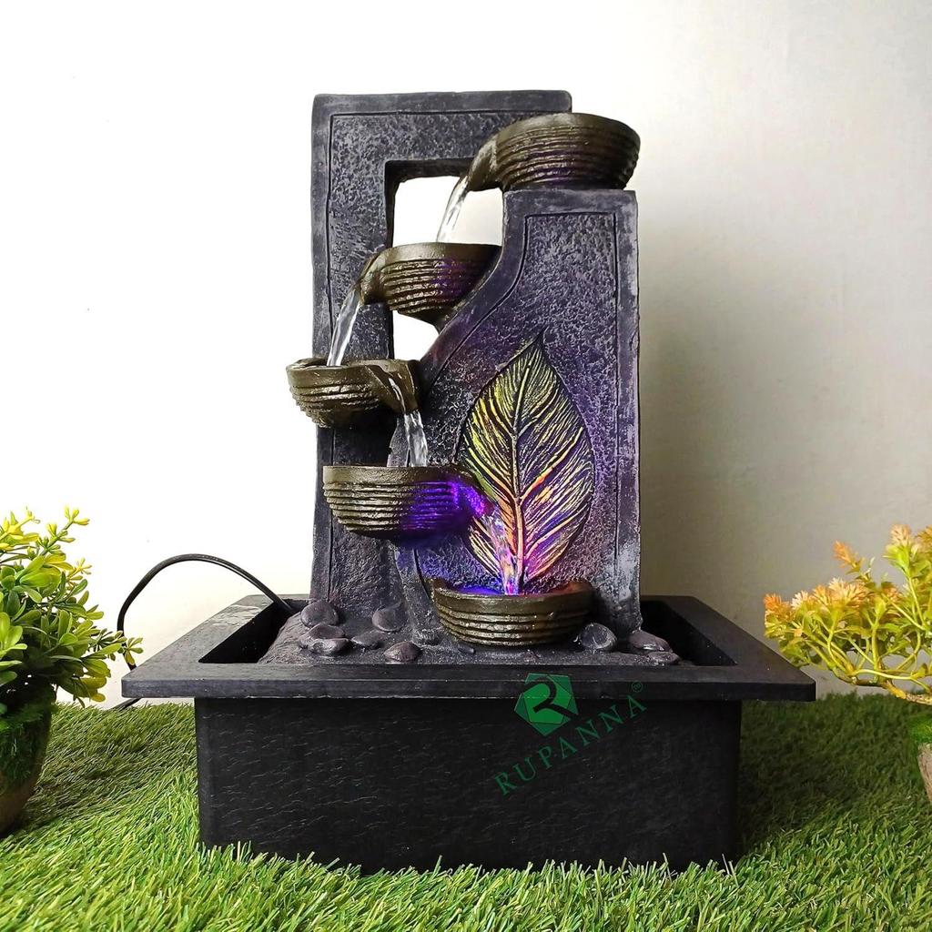 Bordsfontän i 4 steg med RGB LED-ljus för heminredning/gåva/Vastu/Pooja/reception/inflyttningsfest (Mossgrön)