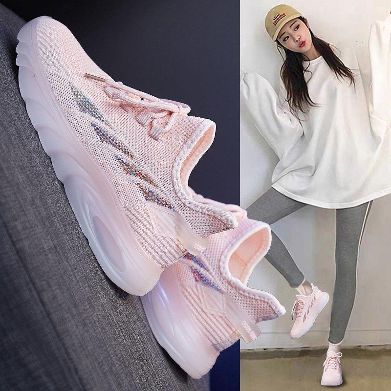 Sommar nya flugvävda andningsbara damskor vår och höst gelésulade vardagsskor plattbottnade mesh
