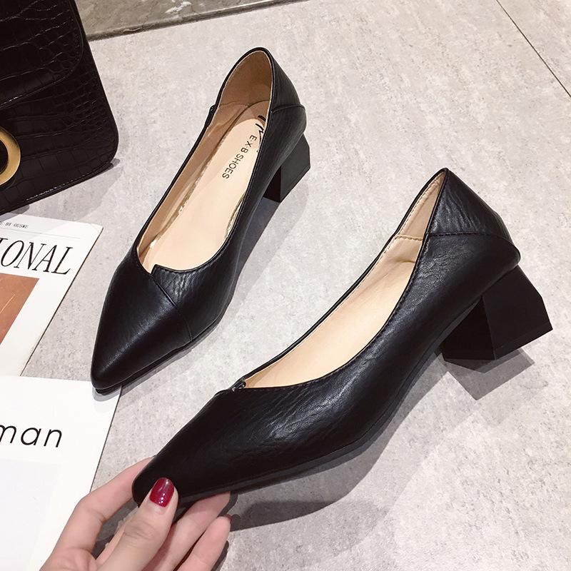 Work shoes Professional women's shoes Two wear medium heel pointed versatile single shoes Beige high heels Women's thick heel