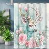 Vintage-inspired deer skull shower curtain with floral pattern perfect for rustic bathroom decor