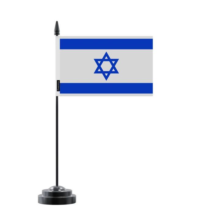 Drapeau de Table d'Israël – 14 x 21 cm – Polyester – Socle en Plastique Noir – Pixelforma