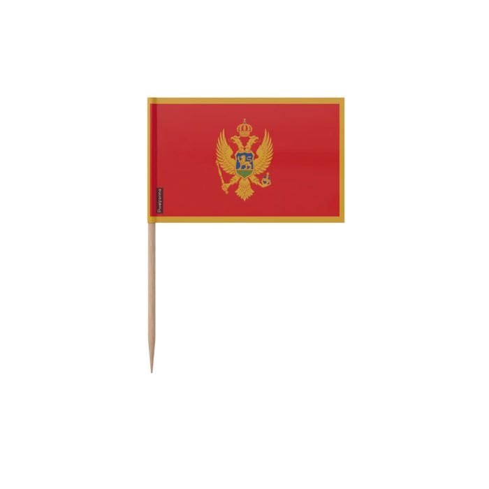 Cure-dents Drapeau du Monténégro - 10 cm - 100 pièces - Plastique adhésif - Bâton en bambou - Pixelforma