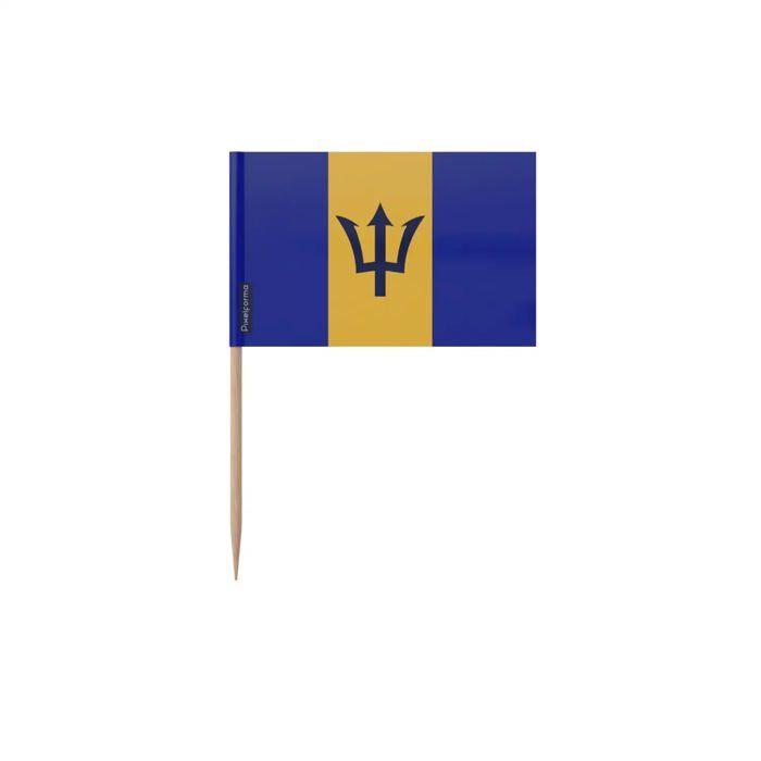 Cure-dents Drapeau de la Barbade - 12 cm - 100 pièces - Plastique adhésif - Bâton en bambou - Pixelforma