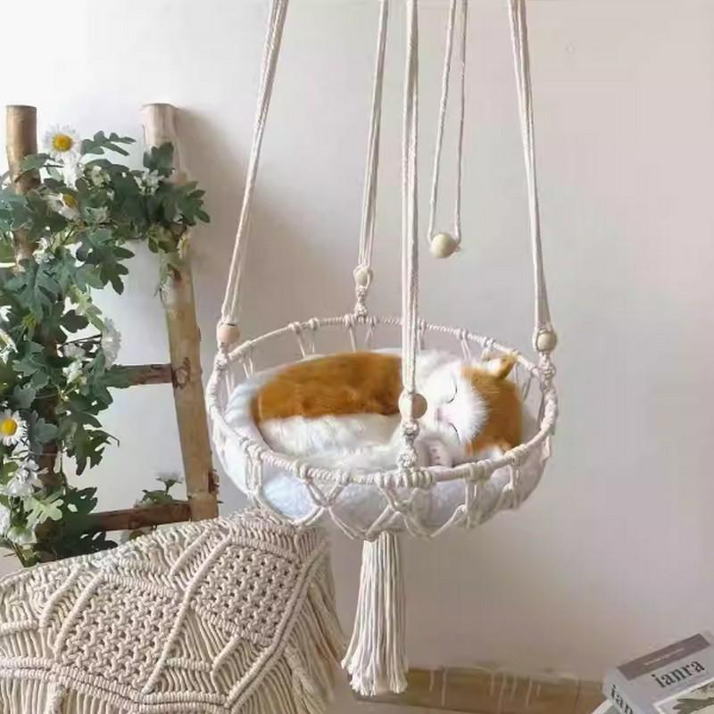 Handmade woven tassel Bohemian style pet cat hammock swing, with cotton padding, suitable for sleeping and playing.