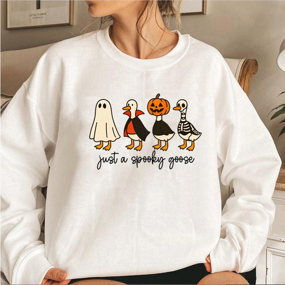 Bara En Spöklik Gås Halloween Tröja Rolig Halloween Gås Huvtröja Långärmad Unisex Tröjor Söt Skräck Grafiska Huvtröjor