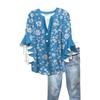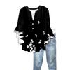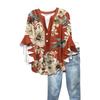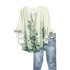 Sommar Damtoppar V-ringad Sjuärmad Skjorta Vår Sommar Blommönstrade Toppar Casual Skjorta