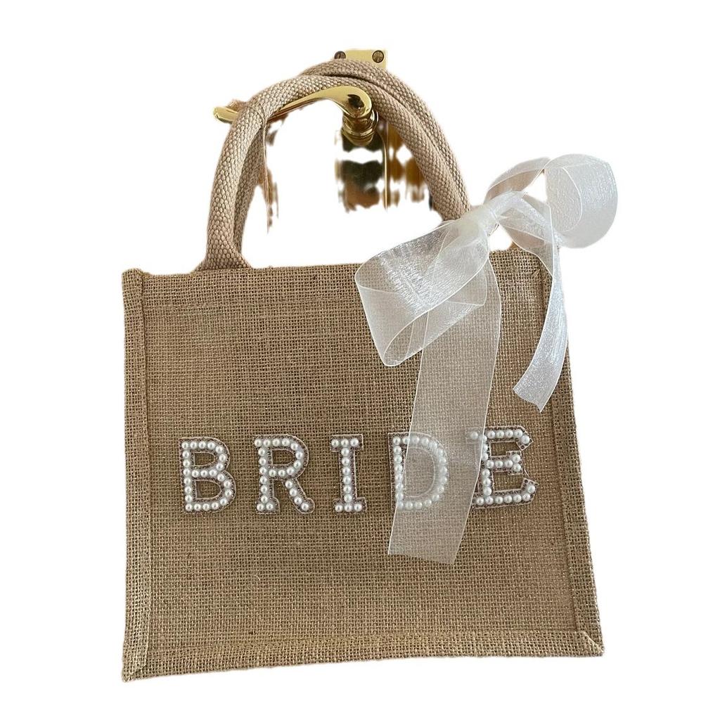 Bride , Pearl Letters, Burlap, Handbag, Bridal Wedding Decoration, Bachelor Party Supplies, Wedding Souvenir Handbag