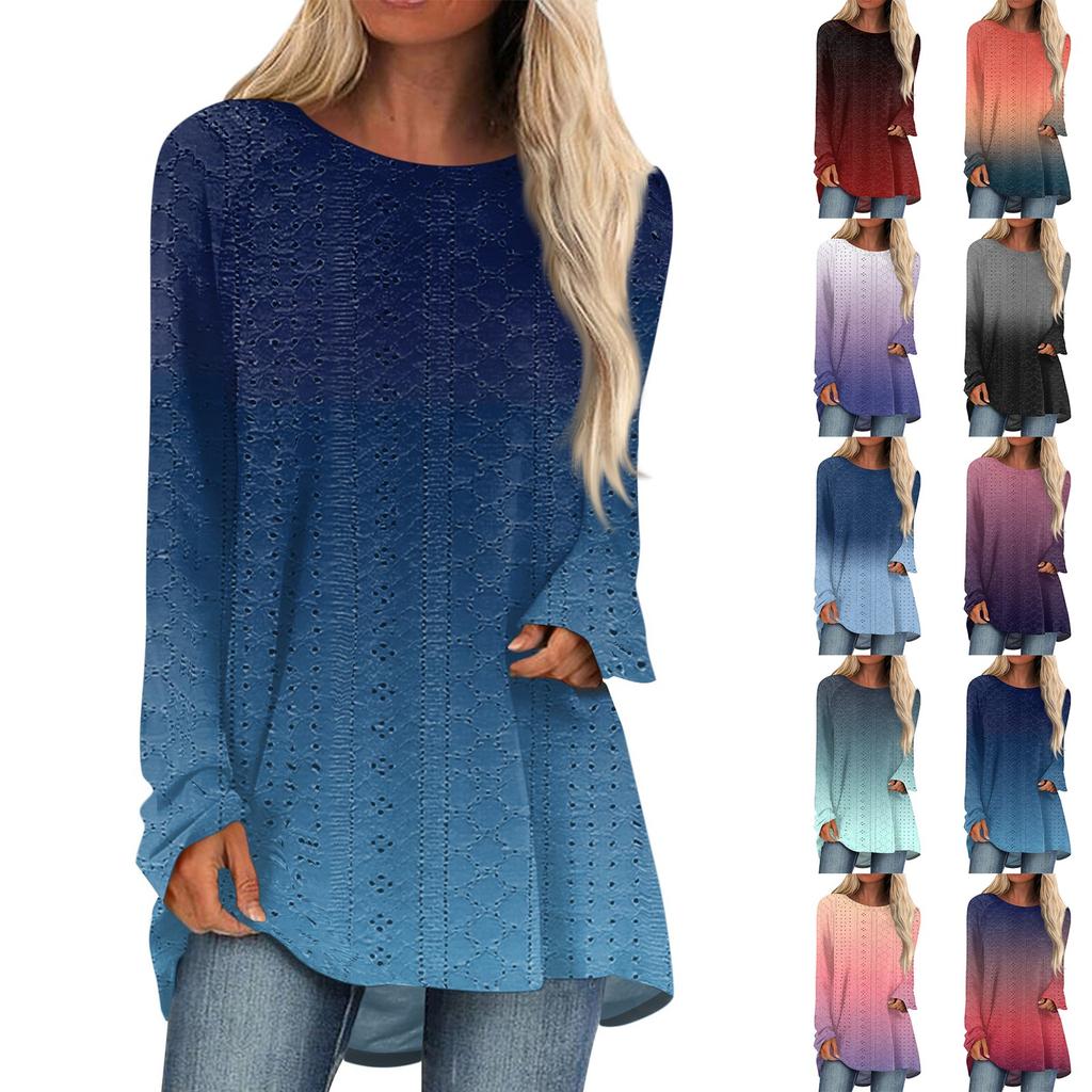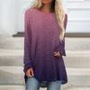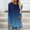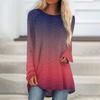 Damtoppar Rundhals Långärmad Blusar Lediga Mellånga Skjortor Mode Tryck Tunika Toppar