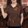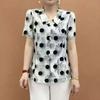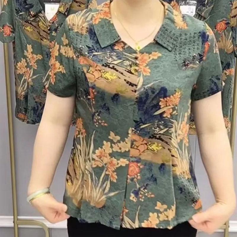 Folk Vintage Printed Loose Blouse Summer Turn-down Collar Button Commute Casual Pleated Spliced Shirt