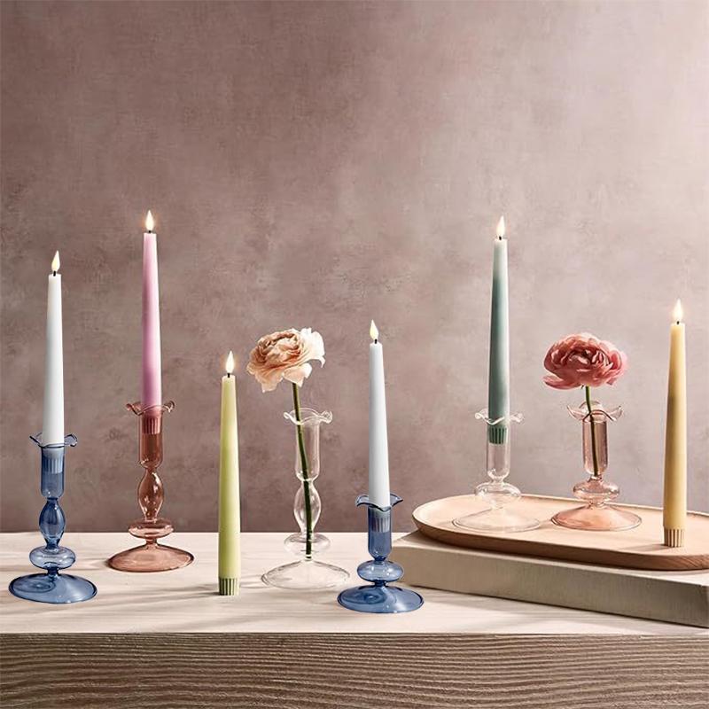 2 st/set Ljusstake Elegant Transparent För Avsmalnande Ljus Vågig Flaskmynning Hem Friterade Blomvaser Bröllop 3 Färger