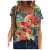Casual Summer T-shirt 2025 New Women's 3d Floral Print T-shirt Ladies Street Wear Short-sleeved V-neck Top