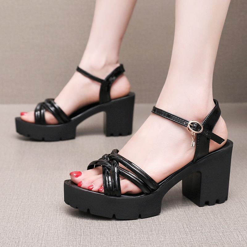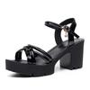 8cm Små Stora Storlekar 33-43 Eleganta Tjockbottnade Lackskor Platåsandaler 2025 Blockhöga Klacksandaler Kontorsmodell