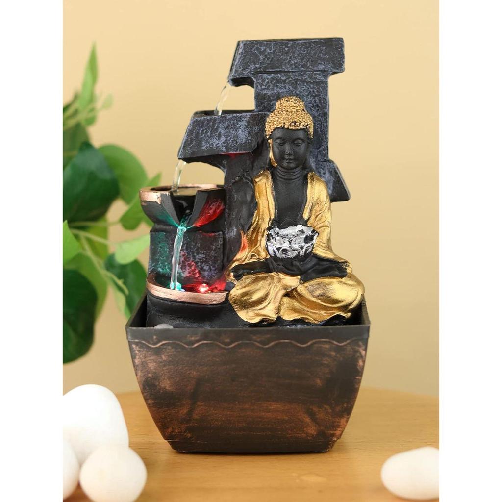 3 Step Buddha Fountain Indoor Home Decor Polyresin Indoor/Outdoor Water Fountains with LED Lights, Home Decor, Decoration