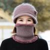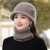 Damstickad mössa i kaninhår för höst och vinter med modeblomma
