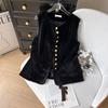 French retro fashionable vest women's top women's 2025 new thin high-end velvet black outer