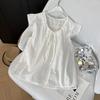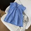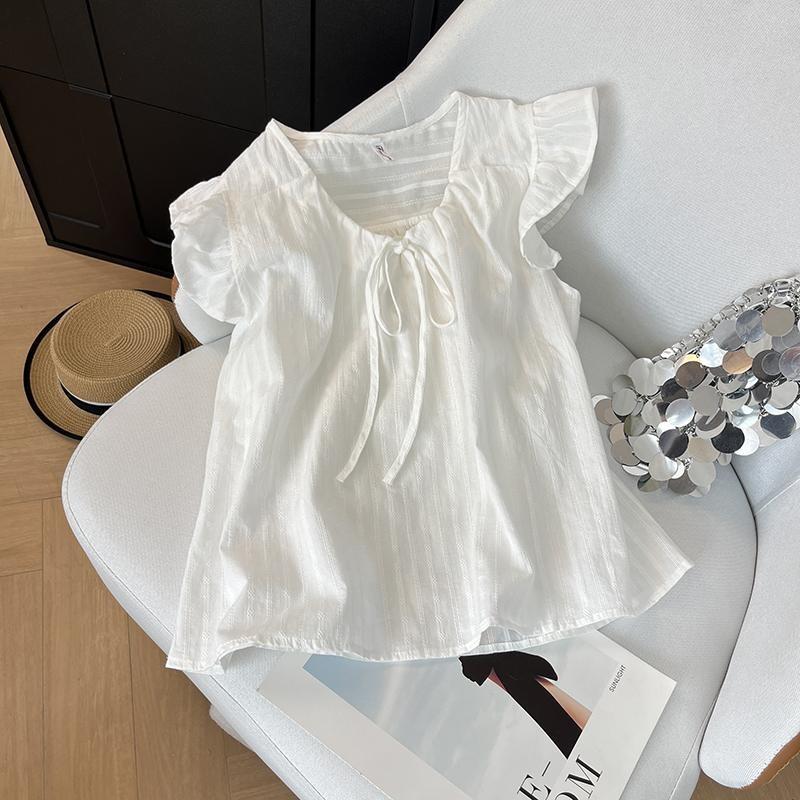 Lace-up short-sleeved shirt women's 2025 summer new ruffle edge drawstring loose small fresh sleeveless top