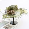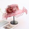 Damhatt för sommaren med blomma, strandhatt, moderiktig, andningsbar organza solhatt, hopfällbar platt topphatt