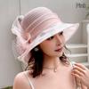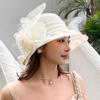 Breathable Bridal Tea Party Wedding Hat Wide Brim Beach Hat Elegant Organza Hat Summer