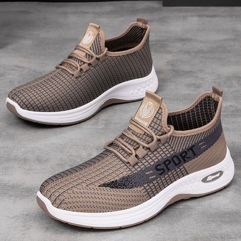 Herr Nya Sneakers för Sommaren Flygstickade Andningsbara Löparskor Trendiga Snörskor Lättviktiga Mjuka Sulor Utan Tröttande Fotskor