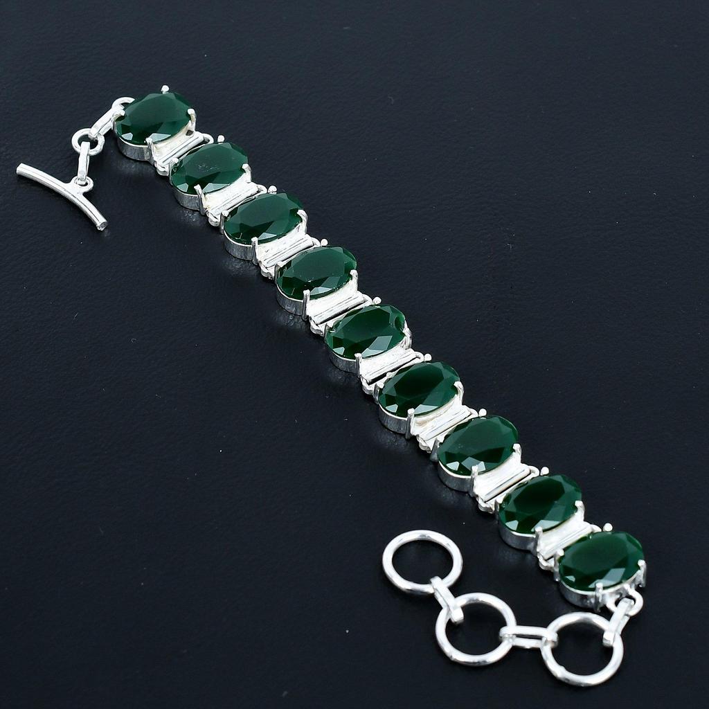 Vackert smaragdarmband 925 Sterlingsilverarmband Justerbart kedjearmband Handgjort Boho-armband Smycken med smaragdädelsten Bröllopspresenter