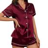 Dam Pyjamasset Kortärmad Knäpptopp och Shorts Bekväma Loungewear