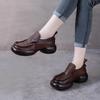 Autumn new leather thick-soled round head black small leather shoes women's thick heel muffin bottom sheepskin retro lazy single shoes