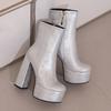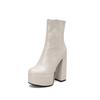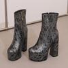 Stora storlekar Tryckt PU-material Hög platå Ultratjock klack Kort skaft Damstövlar Dragkedja i sidan Plyschfoder Varma vinterstövlar