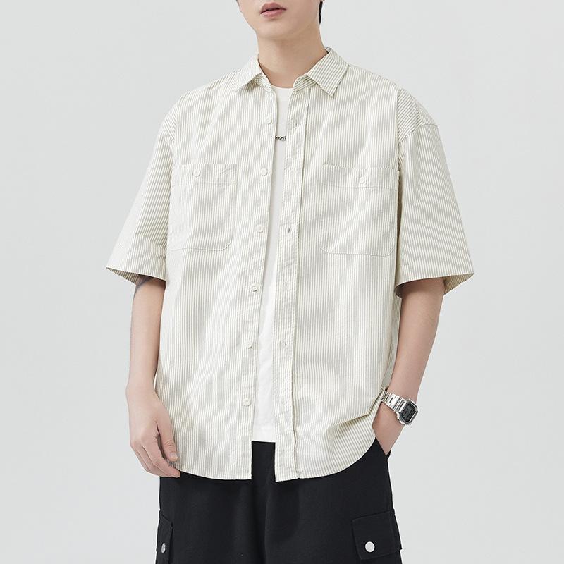 Summer Pure Cotton Striped Short-sleeved Shirt Men's Japanese Retro Loose American Trendy Shirt