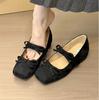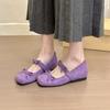 2025 Vår och Höst Ny Elegant Stil Mary Jane Lila Mocka Dubbel Rosett Mode Enkla Skor Fyrkantig Tå Höjdökning