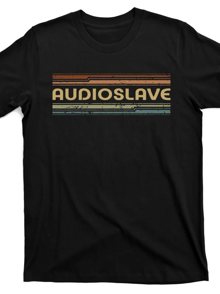 Herr Audioslave Vintage Rockband Grafisk T-shirt 220g Tungvikt Bomull Retro Musik T-shirt med Fet Typografi Färgglada Ränder