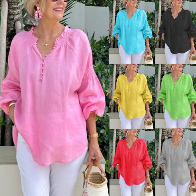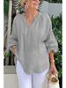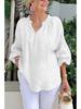 Lyft din garderob med denna eleganta damtopp med V-ringning, perfekt för våren/sommaren 2025. Denna långärmade topp är tillverkad av högkvalitativt polyestermaterial och erbjuder en bekväm och andningsbar passform idealisk för vardagsbruk.. Det enfärgade mönstret och den smickrande V-ringningen kombinerar enkelhet med sofistikering, vilket gör den till ett mångsidigt tillskott till vilken outfit som helst.. Idealisk att kombinera med dina favoritbyxor eller kjolar, denna topp lovar att leverera både stil och komfort till din säsongsgarderob.