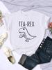 Tea Rex Rolig Dinosaurie Dricka Kaffe Dam T-shirts Andningsbar Casual Kortärmad Personlighet All-matematik T-shirt Kläder Kvinnor Toppar