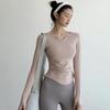 New Spring And Autumn V-neck Sport Top, Yoga Wear, Long-sleeved T-shirt, Professional Running, Quick-drying, Nude Slimming And Fitness Wear For Women