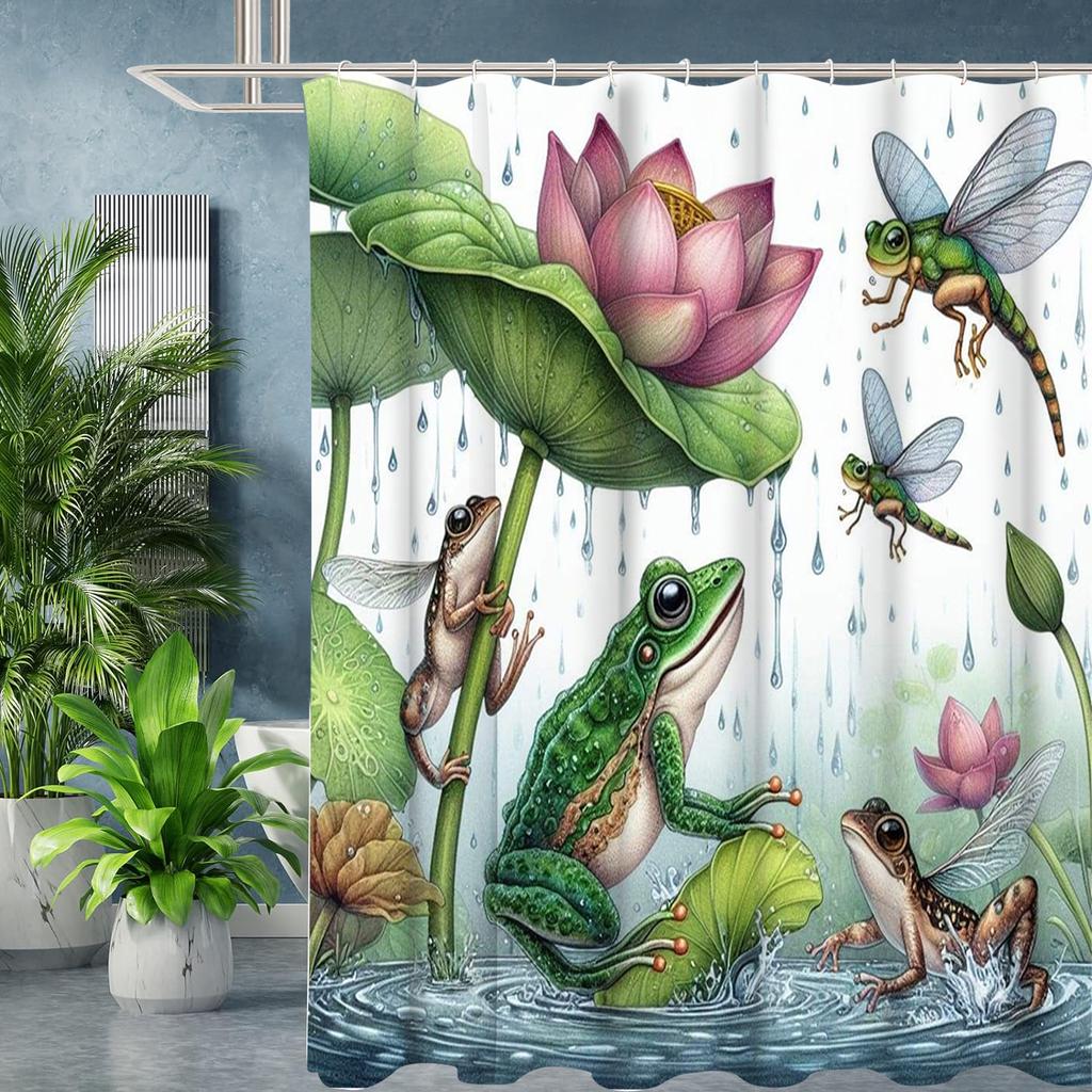 Grod- och lotusbadgardin Badrumsduschdraperi Vattentätt Med 12 krokar Heminredning Fri frakt