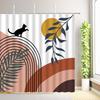 Mid Century Abstract Shower Curtain Boho Arch Sun Modern Minimalistic Plant Leaves Bathroom Decor Fabric Curtains with Hooks