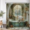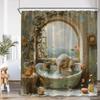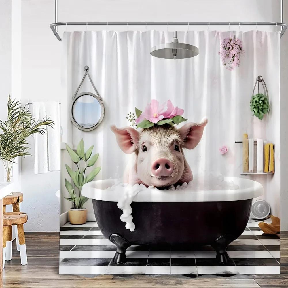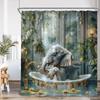 Roliga badande djur Duschdraperier Get Höglandsko Elefant Hund Gris Badrumsdekorationer Bad Djur Badkarsdraperi