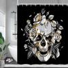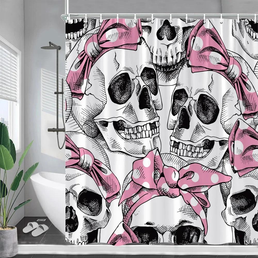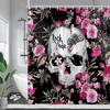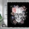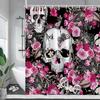 Blommigt Dödskalle Duschdraperi Rosa Blommor Skelett Akvarellkonst Rolig Halloween Badrumsgardin Tyg Badrumsinredning med Krokar